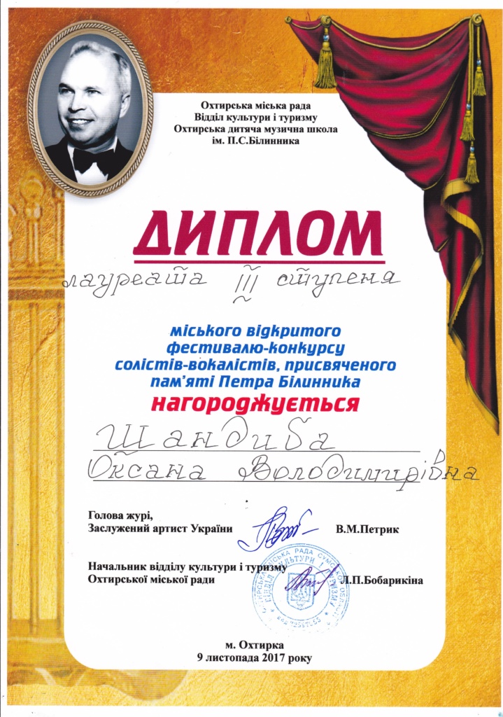 солістів-вокалістів, присвячений    пам'яті Петра Білинника