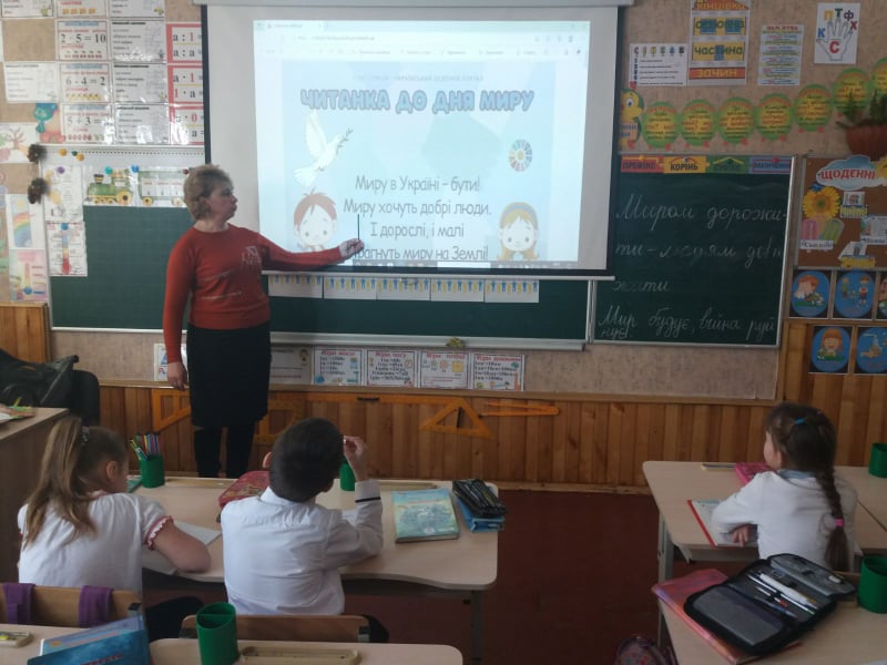 Учні виразно читали вірш, складали та записували прислів'я про мир. Завершилася година підсумковою бесідою про необхідність єдності українського народу задля збереження миру в країні.